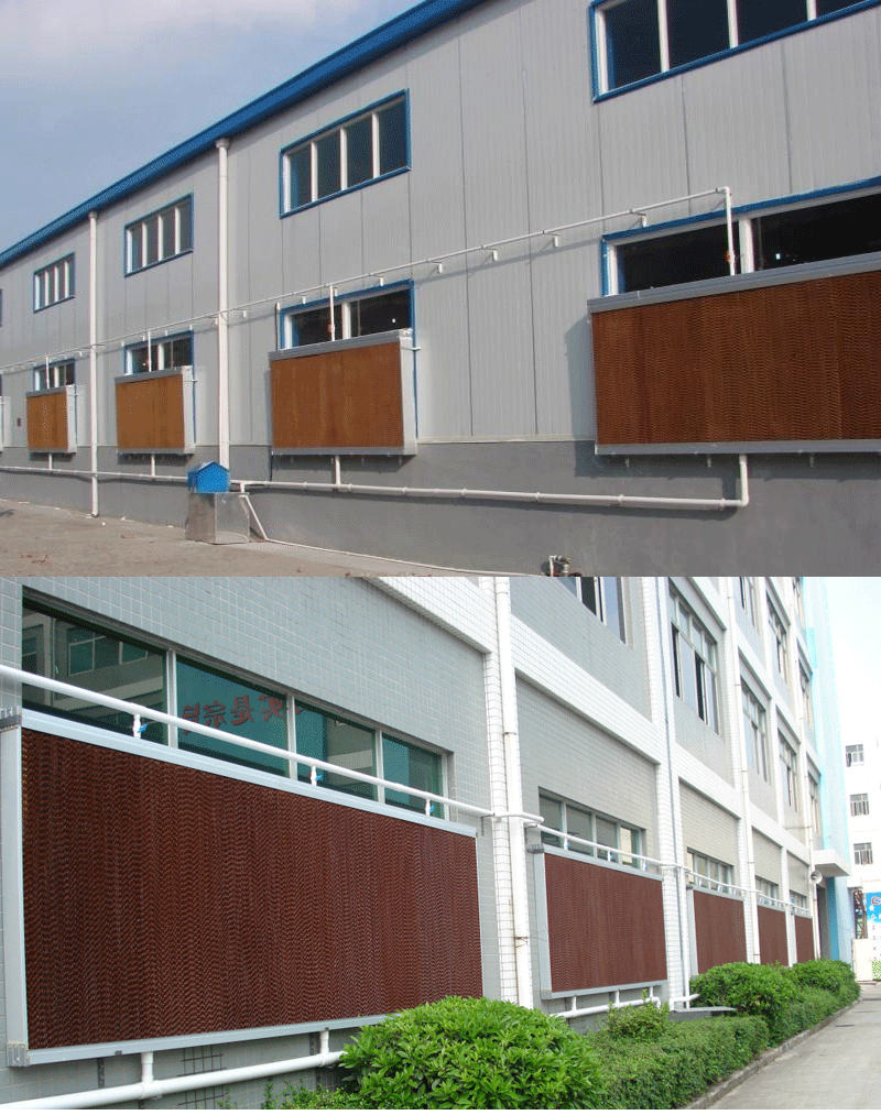 岗位送风、工位除尘排烟的运用不影响正常工作且能大大的提高工作效率。如:玻璃生产及灯工车间,皮草烘干车间的降温,铸造车间范围降温,打磨、粉碎、研磨车间的工位除尘,焊接车间的焊烟排除,热处理车间的岗位降温,食品生产,化纤生产的车间降温和排油烟……保持室内空气干净、清洁、卫生:门窗敞开进行排风是蒸发型冷气机的一大特色,百分之百的新鲜空气更换方式,使人们时刻处于大自然的环境中,完全无传统空调带来的不适应感,将污浊的空气排出室外。投资造价低,并且设备不占任何建筑面积。运行成本极低,与传统压缩机空调系列相比,耗电量只有其1/10。电扇的耗电量,空调的享受。