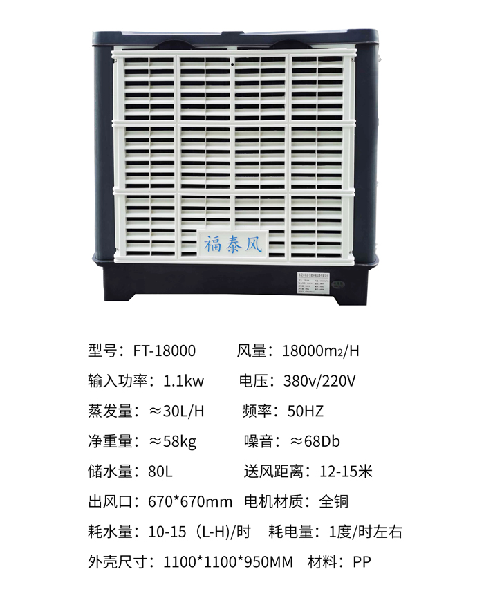耗电少、每小时用电约1度:在同等面积安装中央空调与蒸发式冷风机,耗电量约只需中央空调的1/8。