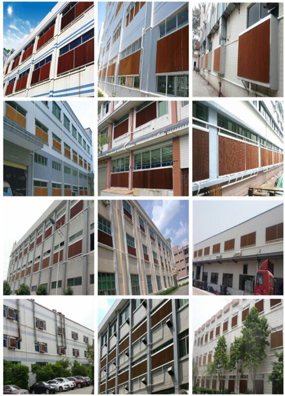 方法一是:根据风机的数量,可以按一台风机配置4-5㎡的湿帘不计算所需湿帘的总面积,再根据厂房的实际窗户尺寸分配各个窗户的湿帘面积(一般以湿帘充满整个窗户为宜,应保证湿帘与窗户交接处的密封)。如厂房原有窗户数量不够,则另需开墙洞提供足够的风量。